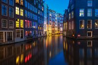 Amsterdam Red Light District tijdens het blauwe uur, 's avonds.