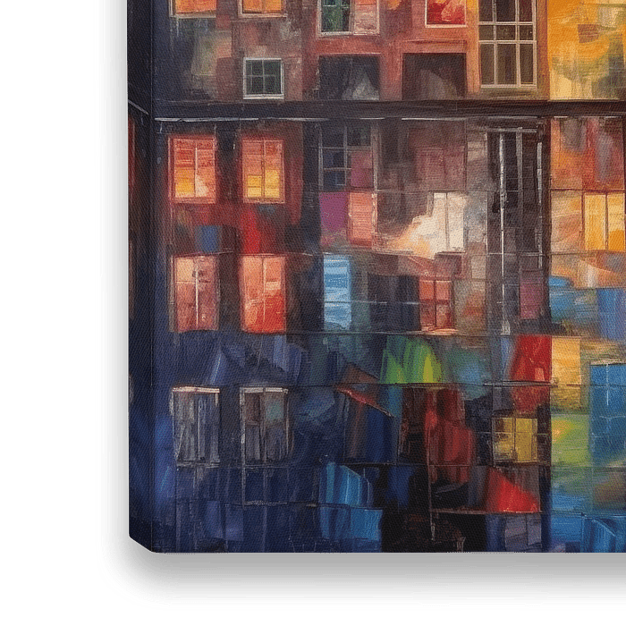 Dit kunstzinnige schilderij is geinspireerd op de charmante Amsterdamse gevels in al hun pracht en praal. Het straatbeeld van Amsterdam wordt gedomineerd door rijen van smalle, hoge gebouwen met verschillende kleuren en patronen op hun gevels. De grachten, die…