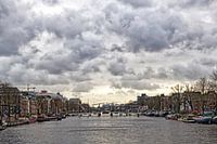 uitzicht over de Amstel met in het midden de Magere Brug. De brug verbindt de kades van de Amstel ter hoogte van de Kerkstraat/Nieuwe Kerkstraat, tussen de Keizersgracht/ Nieuwe Keizersgracht en de Prinsengracht/ Nieuwe Prinsengracht. De brug is sinds 2002 een rijksmonument.