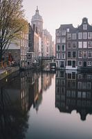 Deze foto is op een vroege ochtend in Amsterdam gemaakt. Op de achtergrond zie je de St Nicolaaskerk.