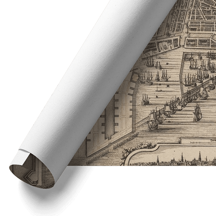 Koop Amsterdam, historische plattegrond als reproductie op canvas, aluminium dibond, (ingelijste) fotoprint, behang en ArtFrame, op maat geprint in Fine-Art kwaliteit.