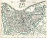 Oude Engelse kaart, plattegrond van de vestingstad Amsterdam, Holland, Nederland in de 19e eeuw met straatnamen en namen van grachten.