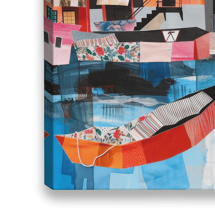 Koop dit abstracte kunstwerk Amsterdam, kleurrijke collage van Studio Allee op canvas, aluminium dibond, (ingelijste) fotoprint, behang en ArtFrame, op maat geprint in Fine-Art kwaliteit.