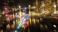 Aan de Amsterdamse grachten zie je honderden bootjes voorbij komen. Door te spelen met licht is er een waar kunstwerk ontstaan,