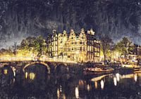 Een prachtig werk van Amsterdam in een mooie geschilderde stijl. Ik maak mijn werken allemaal zelf en maak geen gebruik van AI programma's (kunstmatige intelligentie). Elk detail wordt door mijzelf aangebracht. Daarom kan ik soms wel uren bezig zijn om een bepaald beeld te creëren. Je zou kunnen zeggen dat ik gedachten tot leven breng en werk mijn ideeën tot een zo mooi mogelijk werk, waarin elk detail nauwkeurig wordt aan gebracht.