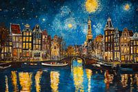 Koop dit moderne kunstwerk Amsterdam starry night van Thea op canvas, aluminium dibond, (ingelijste) fotoprint, behang en ArtFrame, op maat geprint in Fine-Art kwaliteit.