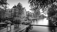Uitkijkend op de Melkmeisjes brug en de grachtengordel. Typisch Amsterdam.