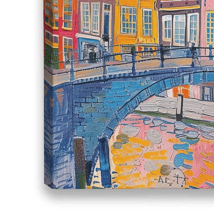 Kunst op canvas doet het goed aan elke muur. Het komt helemaal tot zijn recht bij schilderijen met scherpe penseelstreken.