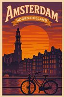 Een stralende zonsondergang baadt de pittoreske grachten van Amsterdam in warm oranje en paars. Het silhouet van een fiets en historische gebouwen creëren een uitnodigende sfeer van vrijheid en ontdekking. Dit kunstwerk is de perfecte toevoeging aan een woonkamer die de charme van het stadsleven wil belichamen.
