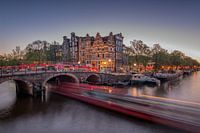 De grachtenpanden op de hoek van de Prinsengracht en Herengracht in Amsterdam, gezien vanaf de Papiermolensluis.