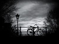 Een fiets op een brug in Amsterdam. Een typisch Nederlands beeld. Nu maar hopen dat de fiets goed op slot zit en er straks nog staat.