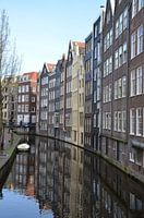 Weerspegeling van Amsterdamse huizen en een canal, Amsterdam, Nederland