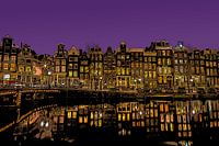 Cartoonachtige bewerking van één van de vele grachten met de bijbehorende grachtenpanden in Amsterdam. Met dit effect lijkt deze foto een pagina uit een stripboek en dat was precies de bedoeling