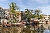 View on the beautiful old buildings along one of the canals in Amsterdam!