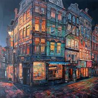 Groot schilderij van Amsterdam voor in de woonkamer? Het schilderij Amsterdams Avondwinkeltje is een mooi modern schilderij van Amsterdam dat waarschijnlijk mooi zal staan. Wat denk jij?
