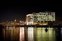 Avondfoto van het Amsterdamse Oosterdok met het Amsterdams Conservatorium en de nieuwe Openbare Bibliotheek OBA.
