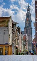 De mooiste toren van Amsterdam gezien vanuit de Egelantiersstraat, kruising Egelantiersgracht. Bij het vervaardigen van dit werk is gebruikt gemaakt van hyperfocaliteit, waardoor zowel de voorgrond als de Westertoren op de achtergrond scherp in beeld zijn gebracht.