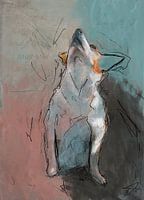 Schilderij dieren/ dierenschilderij. Schilderij hond. Expressief dieren schilderij. Expressief schilderij van een hond.