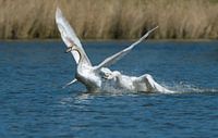 Kleine onenigheid tussen twee jonge Knobbelzwanen in een klein meer van een natuurgebied die ik mijn achtertuin noem omdat het op minder dan een kilometer afstand van mijn achterdeur gelegen is.