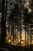 Wanneer je in de winter naar Scandinavië gaat, gaat de kleurenpracht van de zonsopkomst bijna meteen over in die van de zonsondergang. Het licht filterde zo mooi door de bomen heen dat ik het wel moest vastleggen. De laatste resten sneeuw geven de voorgrand nog net wat detail, waardoor deze foto niet helemaal uit silhouetten bestaat.