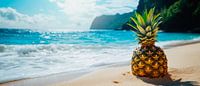 Een zonnig strand waar het glinsterende water zachtjes het gouden zand ontmoet. Een verse ananas schittert met zijn heldere kleur en brengt tropische flair. Ideaal voor in de keuken, waar de geur van fruit de zintuigen prikkelt en elke dag een vakantiegevoel oproept. Een echte traktatie voor de sfeer!