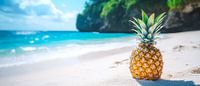 Koop de foto Ananas op het strand - zomeridylle van Poster Art Shop als print op canvas, aluminium dibond, (ingelijste) fotoprint, behang en ArtFrame. Voor jou op maat geprint in Fine-Art kwaliteit.