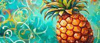 Een heldere ananas charm straalt frisheid en joie de vivre uit en wordt omlijst door levendige aquablauwe en gouden swirls. Dit kunstwerk brengt tropische flair en een zonnige stemming in elke keuken of eetkamer, ideaal om gasten te inspireren en het dagelijkse leven op te fleuren. Een vleugje exotisme voor elke kamer!