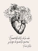 Deze poster heeft een opvallend anatomisch hart als middelpunt, dat een rauwe en beklemmende esthetiek oproept. Naast deze boeiende afbeelding staat een diepzinnig citaat van Frida: "Verliefd worden op jezelf, op je leven en dan op wie je maar wilt." De combinatie van de gedetailleerde anatomische illustratie en Kahlo's wijze woorden…
