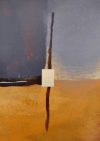 Dit abstracte kunstwerk roept een gevoel van horizon en ruimte op zonder letterlijk een landschap te zijn. Warme aardetinten onderin worden gecombineerd met zachte grijzen bovenin, waardoor een rustige en evenwichtige compositie ontstaat. De lijnen en het kleine vierkant zorgen voor structuur en focus. De verf is gelaagd aangebracht,…
