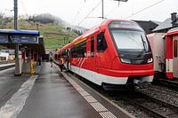 Andermatt Uri Switzerland Matterhorn Gotthard Bahn, railway line here running between Andermatt and Disentis. train, rail, transport, transportation, travel, mgb