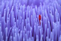 Anders.....en toch gewoon. De paarse bloem is de bloeiende artisjok en de rode stamper is van de Pincushion Protea. Met deze foto wil aangeven, dat anders ook mooi is. Opvallend en toch gewoon. De ene andere....gaat ook in de menigte op. Het enige anders....is de kleur en de vorm.....wat maakt het uit.