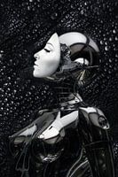 Surrealistisch futuristisch portret van een half vrouw half robot . Mixed media schilderij