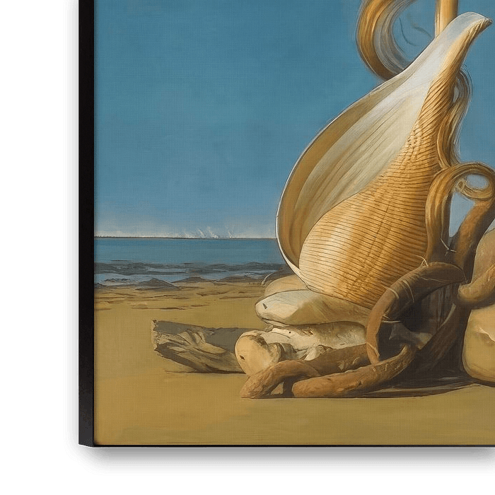 Andromède prisonnière" van Pierre Roy is een prachtig surrealistisch schilderij dat gewone voorwerpen combineert met droomachtige beelden om een mysterieus beeld te creëren. De compositie concentreert zich op een fijn geproduceerde verzameling dingen gerangschikt tegen een rustige achtergrond van een strand onder een helderblauwe lucht, bijna typerend voor surrealistische schilderijen.