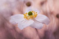 Een bloeiende witte Japanse Anemoon, gefotografeerd met een creative lens van Lensbaby (Sweet 50). Deze lens geeft een zacht en dromerig effect.