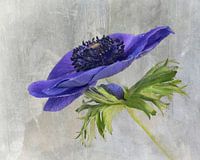 Anemonen heb je in verschillende kleuren. Ik vond deze diep paarse kleur bijzonder aantrekkelijk. Met deze macro opname zie je de schoonheid van de meeldraden extra goed. De gestructureerde achtergrond laat de bloem extra tot zijn recht komen