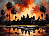 Zie hoe de magie zich ontvouwt wanneer de zon haar gouden tinten werpt op de eeuwenoude stenen van Angkor Wat. Dit adembenemende kunstwerk vangt de serene schoonheid van deze iconische Cambodjaanse tempel op zijn meest betoverende moment. Laat de rust van de scène je meevoeren naar een ver land, waar geschiedenis en natuur in elkaar overlopen. Dit kunstwerk is meer dan kunst; het is een uitnodiging om te ontsnappen aan het alledaagse en jezelf onder te dompelen in de schoonheid van de wereld.