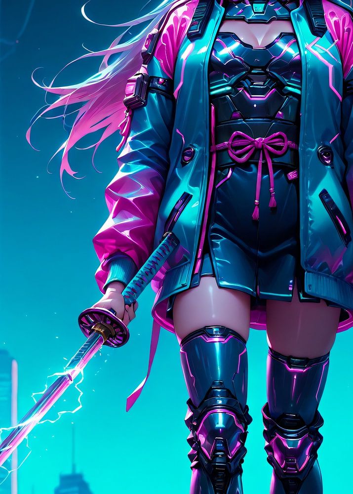 Cyberpunk samurai girl art, neon katana krijger, futuristisch samurai kunstwerk, anime cyberpunk samurai, neon cyberpunk karakter, futuristisch katana meisje, Japanse cyberpunk krijger, neon stad samurai kunst, cyberpunk anime illustratie, neon futuristisch samurai ontwerp.