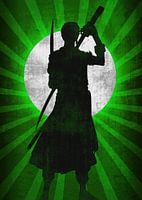 eenvoudig kunstwerk van anime met silhouet en kleurrijke stijl