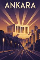 Deze art deco reisposter voor Ankara brengt hulde aan de hoofdstad van Turkije met een dramatische afbeelding van Anıtkabir, het monumentale mausoleum van Mustafa Kemal Atatürk. De minimalistische lijnen en gloeiende lichtbundels creëren een gevoel van kracht, moderniteit en eerbied. Het kunstwerk combineert vintage design met gedurfde typografie en weerspiegelt de rol van Ankara als politiek centrum en als stad met een rijke culturele identiteit. De gouden zonsondergangtinten contrasteren met diepe paarstinten, die zowel traditie als vooruitgang symboliseren. Perfect voor verzamelaars van reisposters, brengt deze Ankara muurkunst elegantie en nationale trots in elk interieur. Of het nu in een studeerkamer, kantoor of woonkamer hangt, het brengt een tijdloze boodschap van veerkracht en inspiratie over. Dit kunstwerk is zeer gedetailleerd ontworpen met strakke, gestileerde lijnen. Het geeft de geest weer van het erfgoed van Ankara en biedt een stijlvolle retro touch voor liefhebbers van design, reizen en geschiedenis.