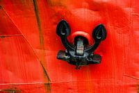 Het schip heeft een hoop meegemaakt. Ik wandel vaak langs de kades en de schepen die daar liggen afgemeerd. Dat is veel inspiratie om haven kunst te maken. Vaak een klein deel van de romp is een kunstwerk. Veel deuken en of sleepsporen en roestsporen en het verhaal van het schip kan je zo lezen. Dit rode schip heb ik aangedikt om het er uit te laten springen. Dit laat zelfs op een donkere dag de ruimte tot leven komen.