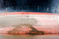 De sporen van ijs dat langs de romp schuurt. Ankerkettingen die over de bulb slijten bij het binnenhalen. Roeststrepen van zout water. Het schip vaart over de wereldzeeën — bevaren, geleefd, getekend door de aarde zelf.