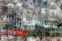 Het Anne Frank huis vanuit de Prinsengracht in Amsterdam in digitale Aquarel.