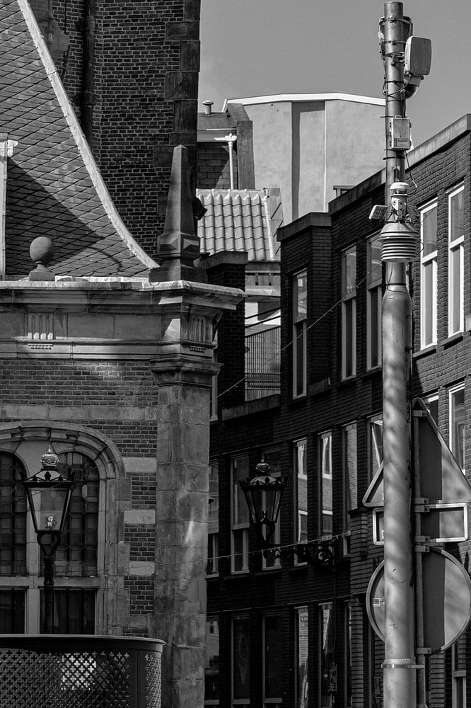 Anno 1371, dat is wat er te lezen valt op de gevelsteen aan de muur van de Oude kerk op de Wallen in Amsterdam. Op dit zwart-wit werk is de gevelsteen in kleur getoond.