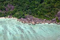Luchtfoto van Anse Source d'Argent op La Digue, Seychellen.