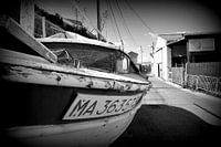 Vieille embarcation en tatente de réparation.