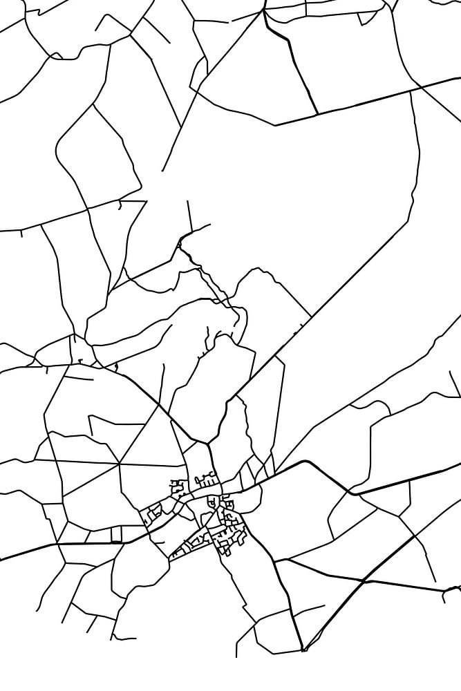 Zwart-witte landkaart, stratenplan of plattegrond van Ansen. Ansen is gelegen in de gemeente Westerveld, provincie Drenthe. Op de stadskaart zijn alle openbare wegen in Ansen opgenomen. Verder is de kaart voorzien van de coördinaten van het centrum van Ansen.
