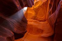 Een lichtbundel schijnt naar binnen in de kloof van Lower Antelope canyon in het Navajo