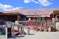 Een antiek station bij het stadje Oro Grande in Californië, VS. Hoewel het stadje zelf ooit een bloeiende gemeenschap was langs Route 66, leek dit deel vooral opgezet om toeristen aan te trekken.