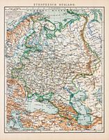 Op deze vintage kaart uit ca. 1900 staat de toenmalige indeling van Europees Rusland afgebeeld. De kaart is in kleur.