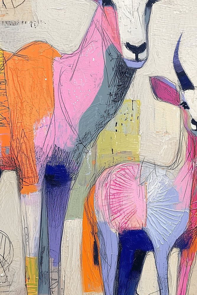 Twee gracieuze antilopen in een droomlandschap van kleur en textuur. Abstracte lijnen en felle vlakken geven de natuur een speels jasje.